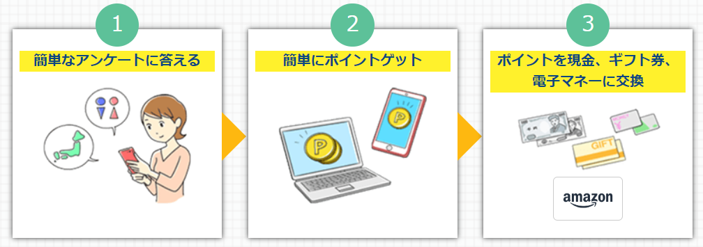 【Point1】簡単なアンケート〜1回で数千円稼げる座談会アンケートまで アンケートの種類が豊富!自分のペースで稼げます♪ 【Point2】現金のほか、ポイントの交換先が豊富♪ (T-POINT、Amazon ギフト券、素敵な商品 等) 【Point3】どんな人でも簡単に始められる! 主婦やビジネスマン、学生誰でもモニターになれます★